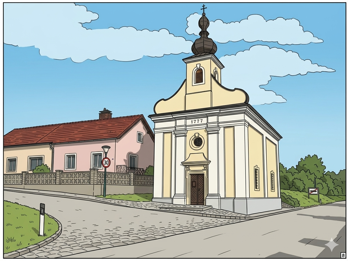 Die Kirche hier in Magersdorf ist der schmerzhaften Mutter geweiht, Maria, die ihren verstorbenen Sohn Jesus in ihren Armen hält. Die 13. Kreuzweg-Station dreht sich um dieses Geschehnis.